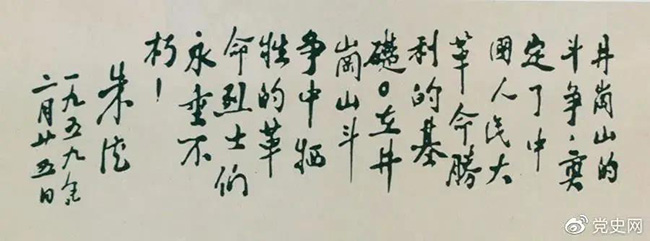 1959年2月25日,朱德為井岡山革命烈士的題詞。